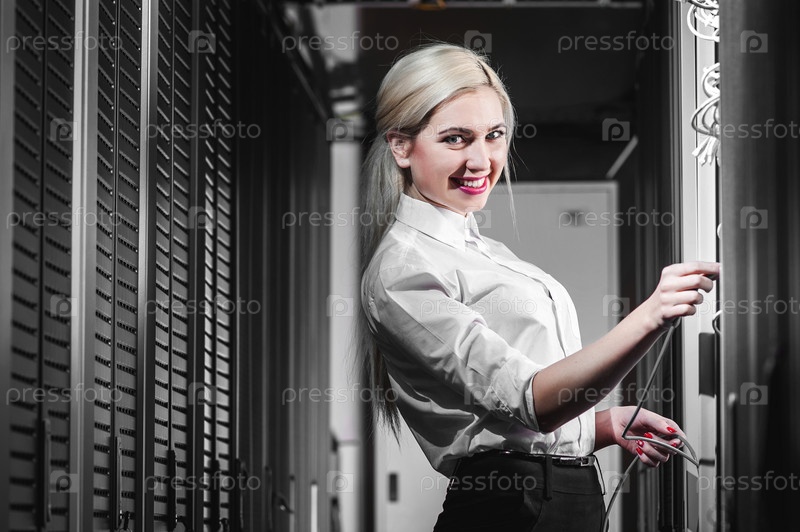 Девушка в серверной комнате