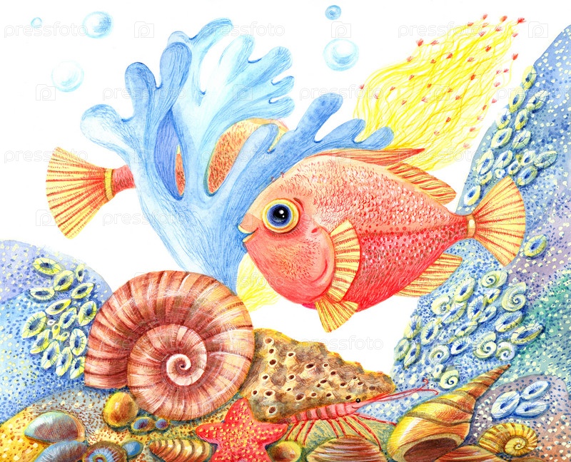 Акварель подводный мир