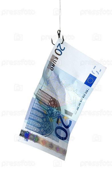 Деньги евро на крючке