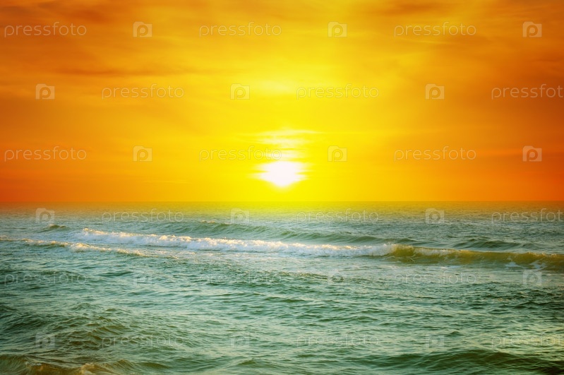 Фантастический восход солнца на берегу океана