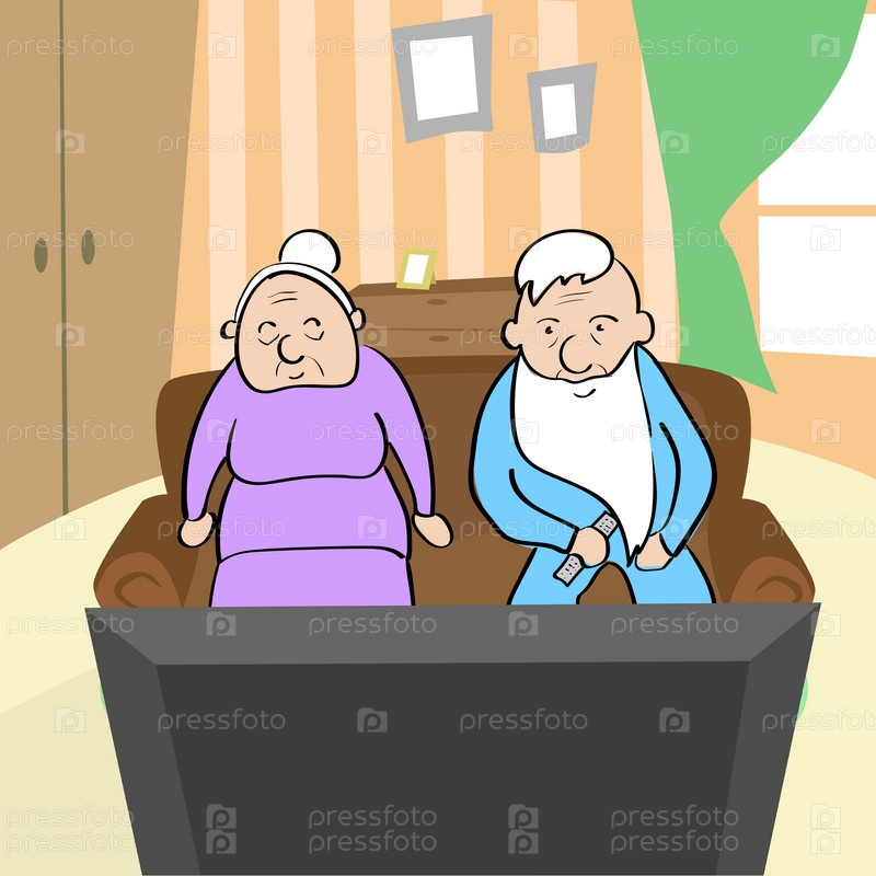 Пожилая пара у телевизора