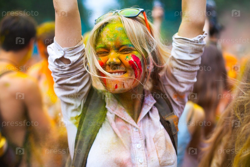 Девушка в краске на фестивале Холи, Москва