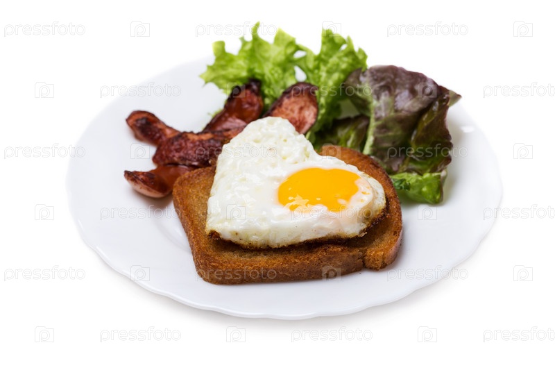 Яичница в форме сердца с беконом