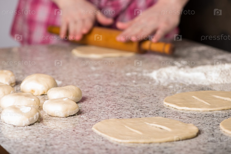Домохозяйка раскатывает тесто