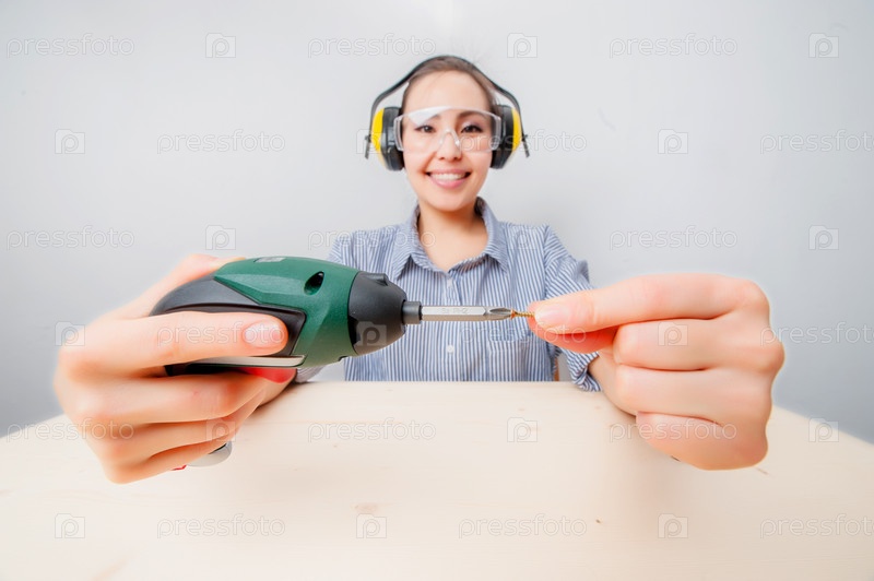 Молодая женщина с дрелью