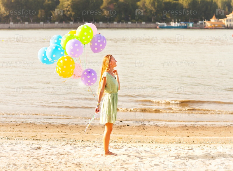 Женщина на пляже с воздушными шарами