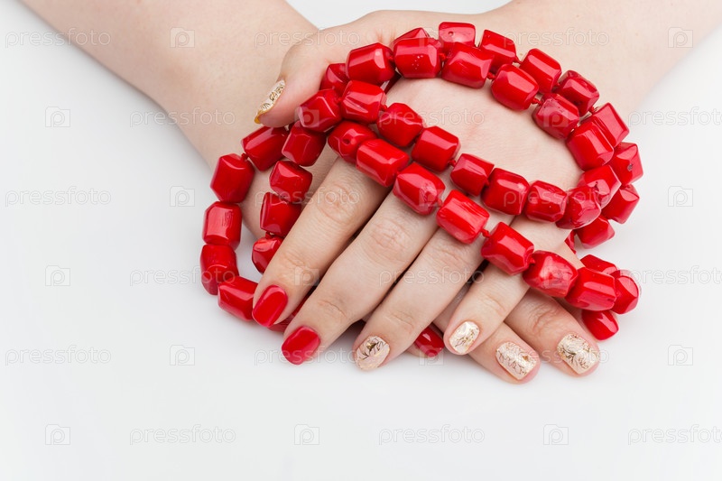 Руки женщины с красными бусами