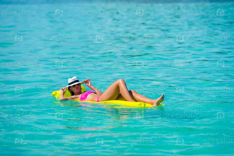 Женщина плавает на надувном матрасе