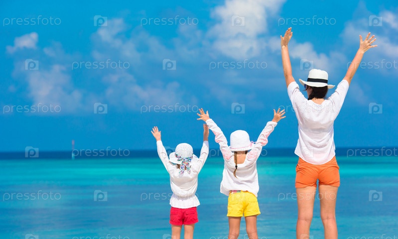 Мать с дочерьми на пляже