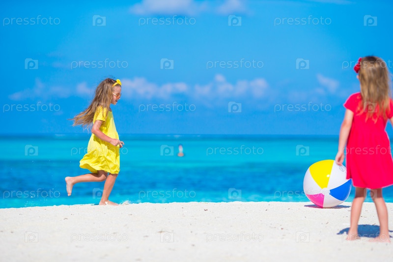 Девочки играют в мяч на пляже