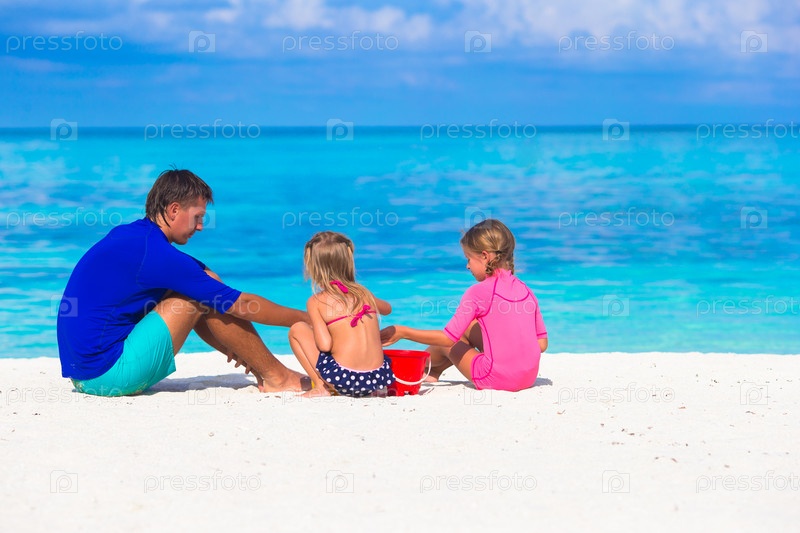 Отец с дочерьми на пляже