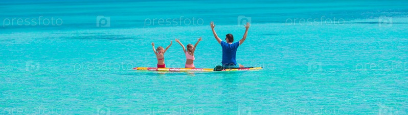 Отец с дочерьми на пляже