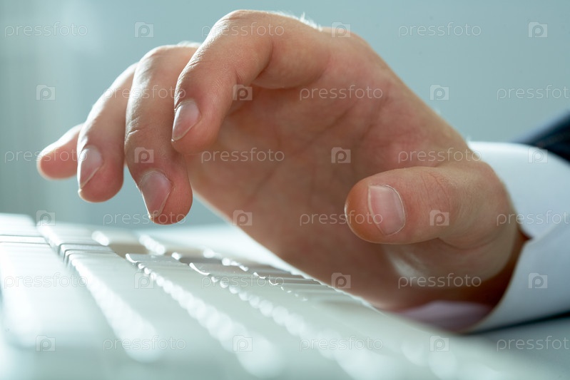 Рука делового мужчины над клавиатурой