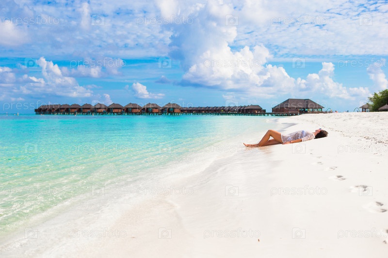 Девушка лежит на пляже