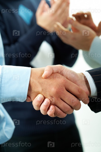 Деловое рукопожатие и аплодисменты деловых партнеров