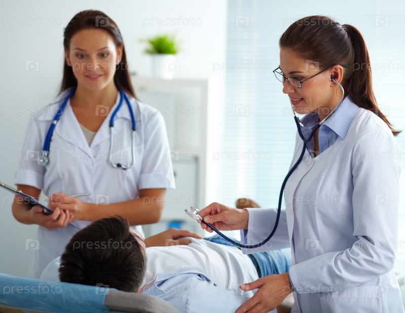 Две женщины-врача лечат пациента в больнице