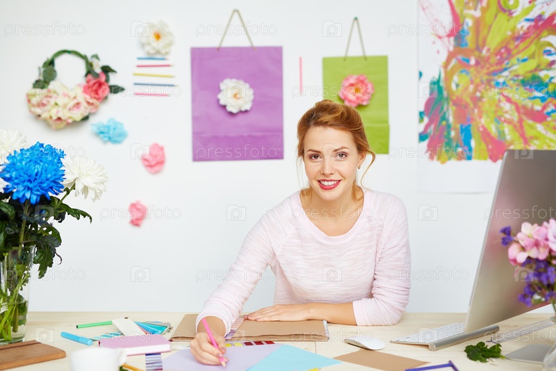 Красивая дизайнер за работой