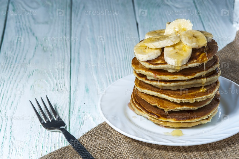 Домашние блинчики с кусочками банана и медом