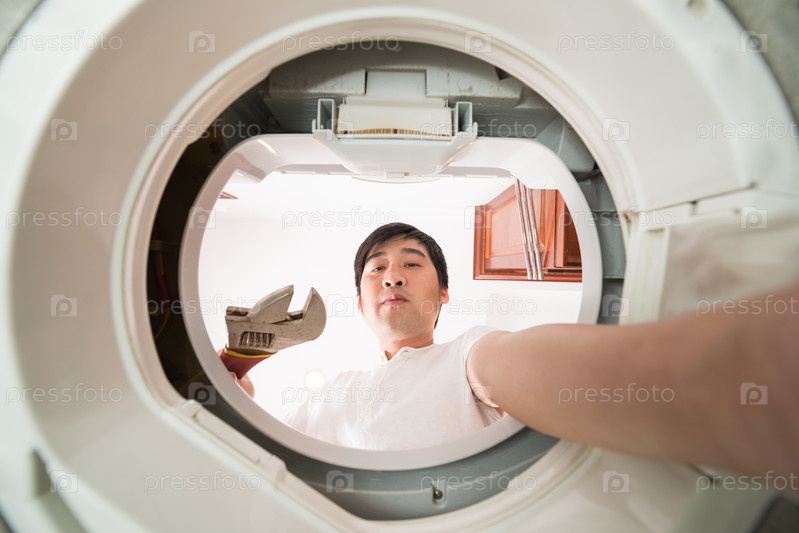 Мужчина чинит стиральную машину