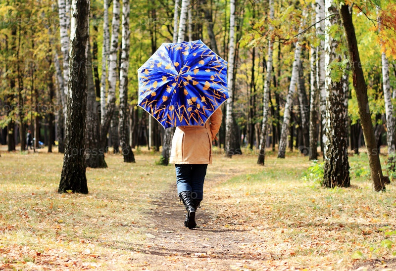 Женщина с зонтиком в осеннем парке