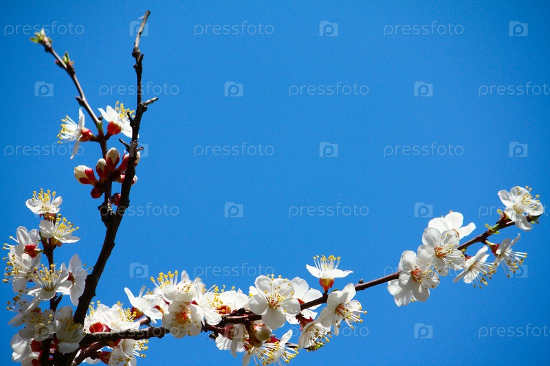 Ветка цветущего абрикоса на фоне неба