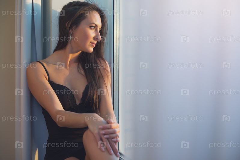 Красивая девушка сидит на подоконнике