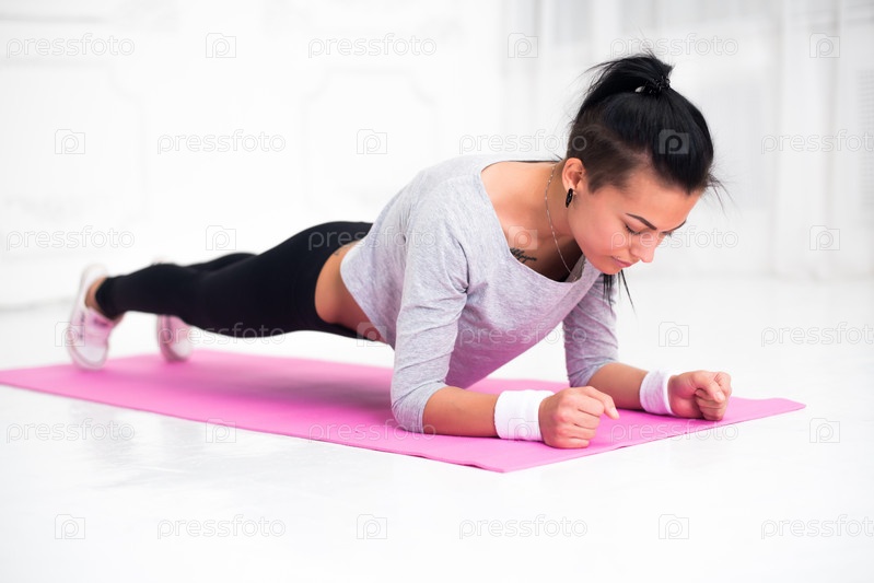 Девушка стоит в нижней планке