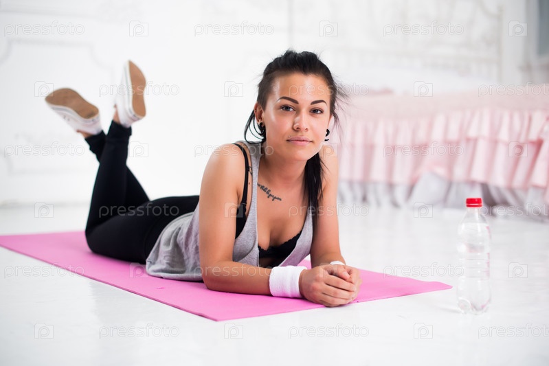 Спортсменка отдыхает после упражнений