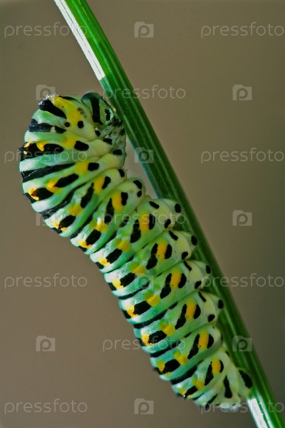 Гусеница ползет по травинке