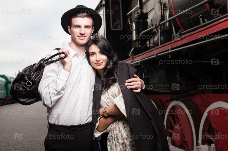 Счастливая пара на перроне