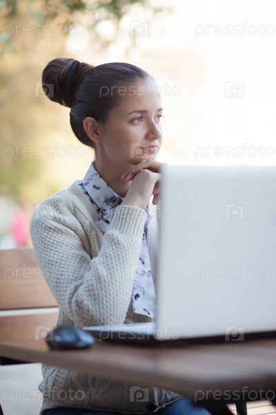 Девушка за ноутбуком