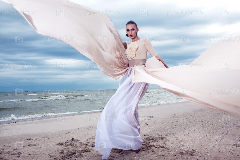 Девушка в элегантном платье на пляже