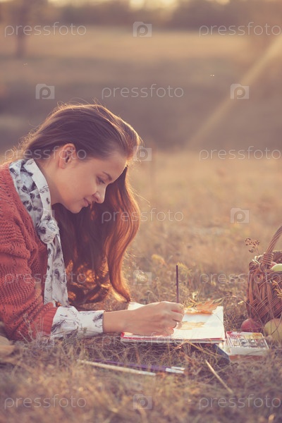 Художница в осеннем парке