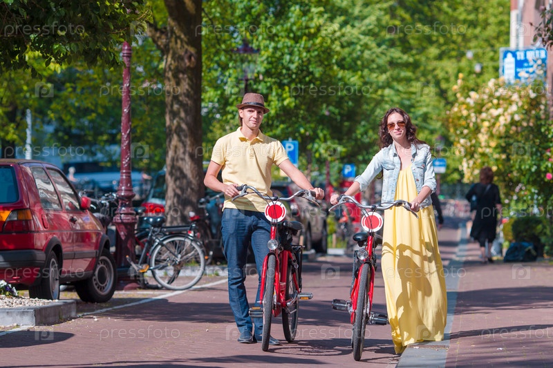 Молодая пара с велосипедами