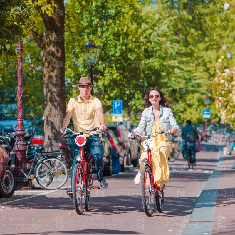 Молодая пара на велосипедах