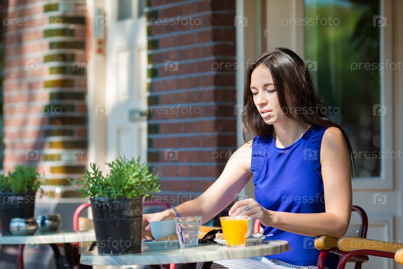 Красивая женщина завтракает