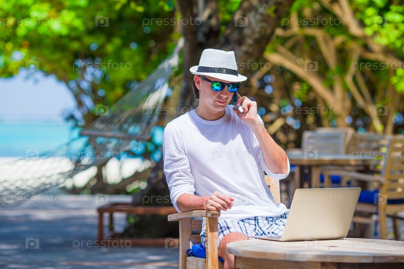 Молодой человек разговаривает на пляже