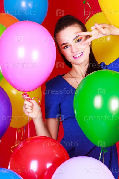 Портрет молодой женщины среди ярких шаров