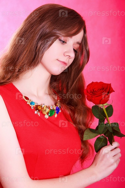 Портрет молодой привлекательной женщины с красной розы