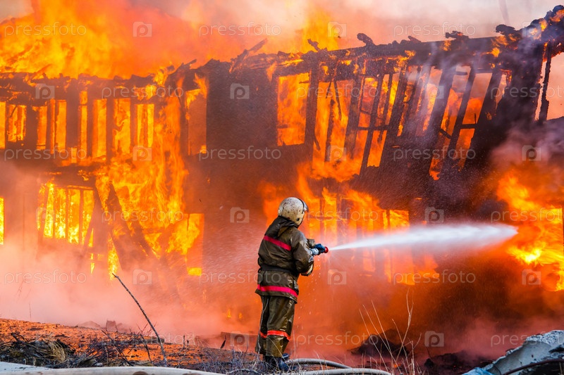 Пожарный на пожаре