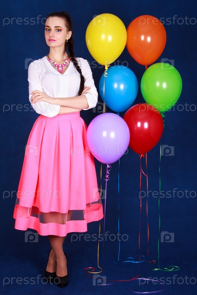 Молодая женщина на фоне воздушных шариков