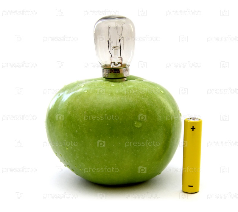 Зеленое яблоко с лампой и батареейqrf
