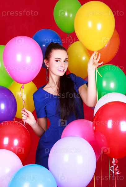 Портрет молодой женщины привлекательным среди ярких шаров
