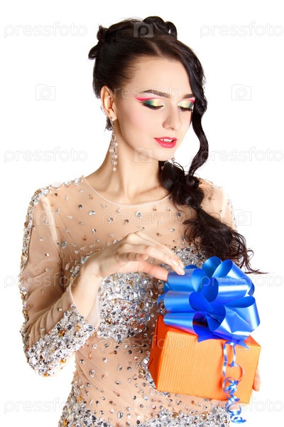 Портрет красивой молодой женщины с ярким подарком