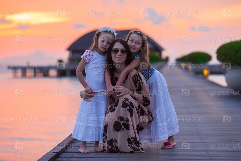 Мать с дочками на пирсе