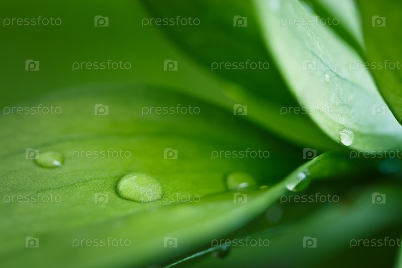 Капли воды на зеленом листе