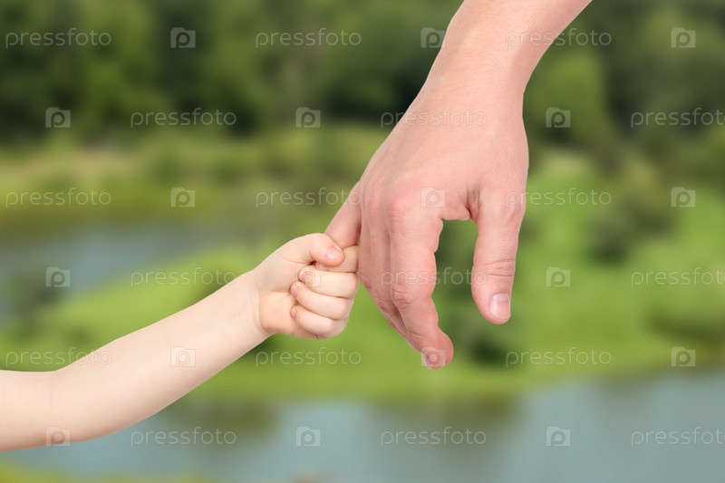 Отец держит руку маленького ребенка