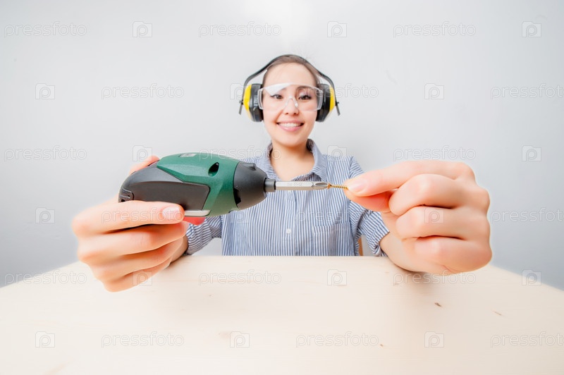 Молодая женщина с дрелью