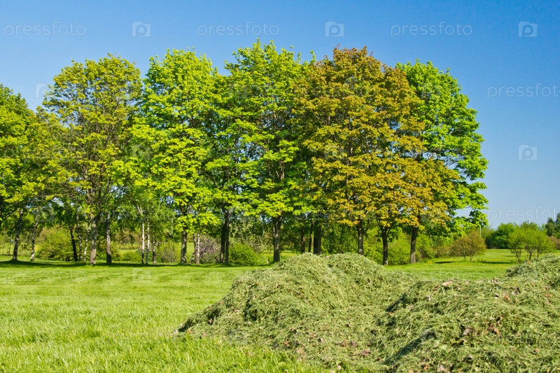 Куча скошенной травы в парке