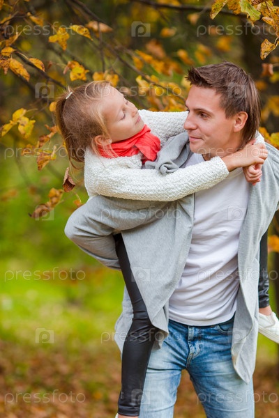 Отец и маленькая девочка в парке осенью